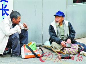 據(jù)市民介紹,“候鳥型”職業(yè)乞丐相當(dāng)一部分是頭裹方巾的中年人,身體健康,一般隨身帶著一個(gè)三四歲左右的孩子,也有部分殘廢人員。