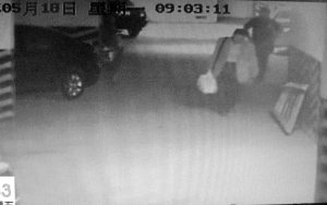 倒地的鐘益師沒有搏斗,雙腿蹬了幾下。80秒后,被兩名男子壓在身下的鐘益師,沒有反應(yīng)。兩分鐘后,一輛白色桑塔納轎車出現(xiàn)在死者身邊。兩名男子交談后,把死者塞進(jìn)了汽車后備廂。隨后,汽車駛出車庫。