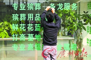 昨天開(kāi)始,廣州市民政部門(mén)會(huì)同市公安、交委、衛(wèi)生、工商、物價(jià)等部門(mén)展開(kāi)兩天的聯(lián)合行動(dòng),集中整治殯葬服務(wù)代理市場(chǎng)。檢查中發(fā)現(xiàn)殯葬服務(wù)中介公司多打出提供“一條龍辦喪服務(wù)”的口號(hào)。殯管部門(mén)表示,這是違規(guī)而且也是不可以做到的。同時(shí),對(duì)于殯葬黑中介“宰”喪主這種雪上加霜、有背社會(huì)公德的行為,殯管部門(mén)將堅(jiān)持打擊。