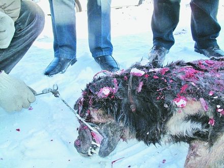 據(jù)了解,“妞妞”被打了兩槍,“黑貝”被打了一槍,均被當場擊斃。