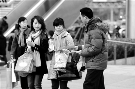 昨天下午4點(diǎn)多,一名年輕男子在西單散發(fā)傳單,尋找自己心目中的女友。其行為隨后被城管執(zhí)法人員制止。