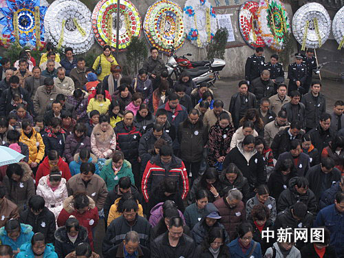 中新網(wǎng)成都12月14日電(王德明)14日,四川宜賓陰雨綿綿。下午四點(diǎn),因公殉職的宜賓縣警察文萬(wàn)彬追悼會(huì)在宜賓縣殯儀館舉行。公安部送了花圈,四川省公安廳發(fā)來(lái)唁電,共青團(tuán)宜賓市委發(fā)出了向文萬(wàn)彬同志學(xué)習(xí)的通知。省市公安局領(lǐng)導(dǎo)、宜賓市縣有關(guān)領(lǐng)導(dǎo)、滇兩省和全市兄弟區(qū)縣的同行、以及數(shù)千群眾自發(fā)前來(lái)吊唁。