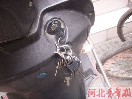 張先生大喊“抓賊”,結果對方扔下車便跑。張先生趕到車旁一看,發(fā)現(xiàn)正是自己的電動車,車電源鎖上還插著一大串鑰匙。