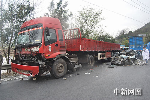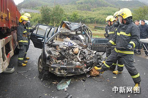 中新網(wǎng)杭州12月15日電(記者 江耘 袁爽)今天中午一時三十分許,浙江杭州臨安市板橋鄉(xiāng)平峰村口的公路上發(fā)生一起車禍,一輛小轎車從村口出來時遭大貨車的猛烈沖撞。事故造成了小車內(nèi)五人中的三人當(dāng)場死亡,兩人受傷。一旁的一名路人也被殃及受傷。