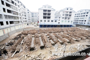 工人鐘代林介紹,“樓脆脆”曝光后,當(dāng)?shù)卣?個單元樓所在的40余戶住宅戶轉(zhuǎn)移并作了臨時安置;去年11月11日起,他們所在的拔山建筑工程有限公司進場,開始對占地約5000平方米的房屋拆除和重建。