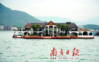 近日,深圳南澳東山灣一棟面積多達(dá)7000平方米,耗資近億元的海上別墅存在五六年之久,卻一直沒(méi)有取得海域使用權(quán)證,被指是一棟“海上違建”(見(jiàn)上圖)。昨天下午,該別墅主人郭奎章在其“海上皇宮”內(nèi)首次公開(kāi)回應(yīng)媒體,稱該別墅是省海洋部門同意的旅游試驗(yàn)項(xiàng)目,不屬于違法建筑,也不可能拆除。