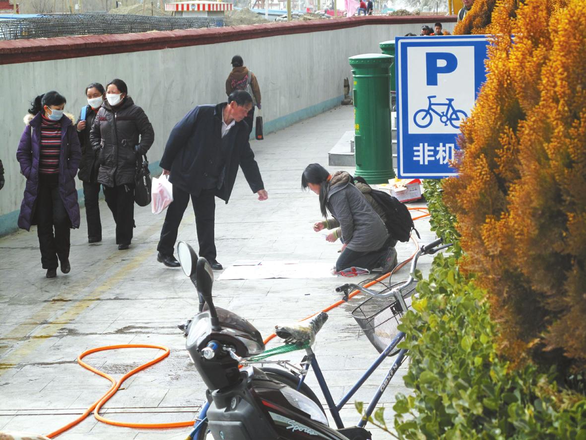 然而,當(dāng)其中一個(gè)女孩看到記者正在遠(yuǎn)處掏出相機(jī)拍照時(shí),顧不得接過(guò)市民遞過(guò)來(lái)的錢,連忙用手遮著臉,拉著另一個(gè)女孩迅速站起來(lái)收拾東西,然后飛快地離開(kāi)了現(xiàn)場(chǎng)。