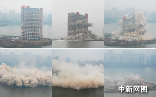 在現(xiàn)場(chǎng),記者看到爆破后遺留的廢墟高約7至8米,據(jù)負(fù)責(zé)爆破的官員介紹,爆破產(chǎn)生的建筑垃圾面積達(dá)1萬(wàn)平方米,重約4萬(wàn)噸,將盡快被送往南昌市郊的垃圾填埋場(chǎng)。(完)