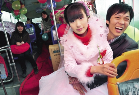 “今天,公司領(lǐng)導(dǎo)安排我來現(xiàn)場向兩位新人表示祝賀,這種方式不僅節(jié)儉,而且很時(shí)尚。”昨天,阜陽市公交總公司黨委辦負(fù)責(zé)人孫九青說。得知鄧輝的心愿后,公司選了一輛嶄新的1路公交車。