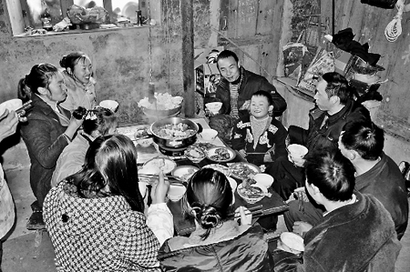 “快點烤一會兒再去泡個熱水澡。你娃兒他媽老早就給你燒好了洗澡水。完了出來吃團(tuán)年飯,我們一直在等你!崩细赣H幫譚崇文一邊卸著包袱一邊說。