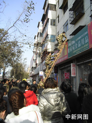 中新網(wǎng)洛陽(yáng)3月11日電 (記者 賈親親 通訊員 鞏衛(wèi)東 魏鵬)3月10日16時(shí)30分左右,河南省洛陽(yáng)市九都路立交橋附近一居民樓出現(xiàn)驚人一幕:一赤腳青年男子從4樓一窗戶爬下時(shí),被大樓門面房上部的門市招牌阻擋遇險(xiǎn),不停的大呼“救命、救命”,急促的呼救聲驚動(dòng)了周圍居民群眾。