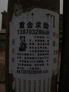 別一張小廣告內(nèi)容大同小異:“《重金求助》少女楊麗,30歲,豐滿靚麗,嫁港商,因夫意外事故失去生育功能,與夫密商特回內(nèi)地尋品正健康男士,圓我做母親的夢(mèng)。通話滿意付定金20萬元,有孕重金120萬元酬謝。雙方不影響家庭,絕對(duì)保密,法律公正。(非誠(chéng)勿擾)”聯(lián)系電話 13870328xxx(本人接)。