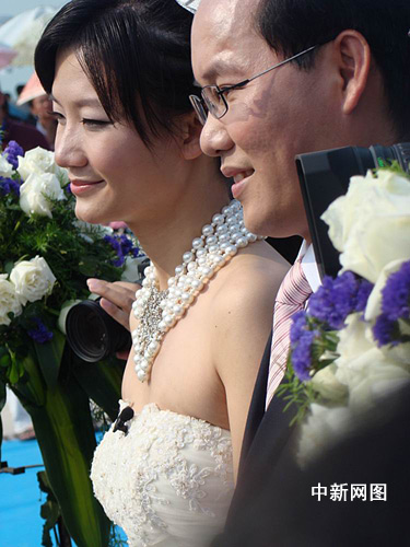 下午3時不到,新娘李丹旻身披潔白婚紗在兩位美麗伴娘的陪同下,出現(xiàn)在游艇岸邊的儀式現(xiàn)場。她向記者表示,與新郎康造東相愛也有好幾年,今天在親人和朋友以及在現(xiàn)場很多不認識的朋友見證下,舉行婚禮,既興奮又緊張,“我們成為海南首對游艇婚禮的參與者,感覺我是最幸福的新娘!崩畹F甜美地笑著說。