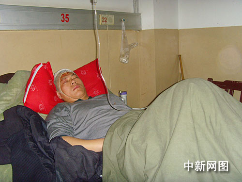 3月22日下午1時40分許,記者在阜陽市人民醫(yī)院急救中心二樓病房里,見到了肇事司機(jī)董飛,他躺在病床上,旁邊坐著一女子與其聊天。當(dāng)發(fā)現(xiàn)有記者前來采訪拍照,該女子迅速離開,面對記者董飛一直不開口說話。隨后,病房內(nèi)看守董飛的兩名警察阻止了記者采訪。