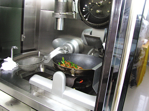2006年10月,中國(guó)發(fā)明了世界第一臺(tái)中國(guó)菜肴烹飪機(jī)器人——“愛(ài)可”。由揚(yáng)州大學(xué)旅游烹飪學(xué)院、上海交通大學(xué)機(jī)器人研究所和深圳繁興科技公司,歷時(shí)4年研制成功。揚(yáng)大旅烹學(xué)院蔡麗婭副書(shū)記告訴記者,“愛(ài)可2.0”能迅速學(xué)習(xí)和掌握優(yōu)秀廚師的菜肴烹制技巧,“手藝”能和名廚比肩,具有完全自主知識(shí)產(chǎn)權(quán)。截至2009年12月,已擁有150多個(gè)發(fā)明專(zhuān)利。被中科院認(rèn)定為“必將改變?nèi)祟?lèi)生活方式的一項(xiàng)重大發(fā)明!