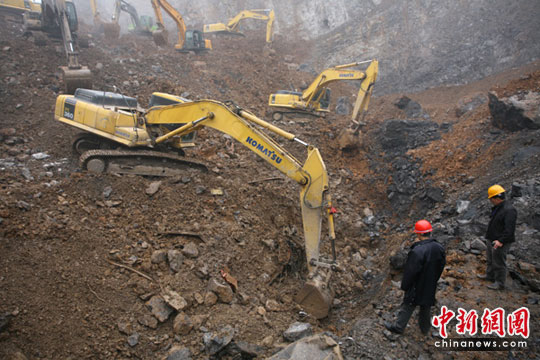 據介紹,搜救犬幫助確定位置后,繼10日17:30分發(fā)現一臺后,今天又在垮滑現場陸續(xù)發(fā)現3臺汽車,至此垮滑現場已找到5臺汽車殘骸。記者在現場看到,汽車大梁、駕駛室、發(fā)動機全部支離破碎成了一堆廢鐵。10臺挖掘機正在不停的工作。現場兩位公安人員拿著照相機、攝像機正在汽車殘骸前取證。三位救援工作人員一邊指揮,一邊提醒挖掘機司機小心謹慎。樂山消防支隊的官兵也在查看現場情況,看能否發(fā)現被埋人員。武警樂山支隊的30余名官兵也做好一切準備,一但發(fā)現情況將迅速趕赴清理現場增援。