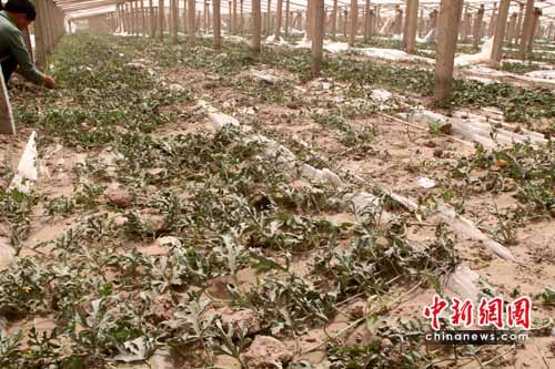 四月下旬正值吐魯番地區(qū)葡萄、哈密瓜等幼苗生長季節(jié)。新疆農(nóng)業(yè)廳說,這次大風(fēng)災(zāi)害使全吐魯番地區(qū)春季作物遭受到“毀滅性打擊”。按照吐魯番地區(qū)葡萄年均種植面積45萬畝測算,這意味著有一半以上的葡萄種植基地受災(zāi)。