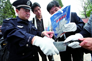 昨日上午,西城福綏靖地區(qū)18所學校的校長和主管保衛(wèi)工作的主任,齊聚在四根柏小學,向警方內保人員學習各種安防用品的使用。