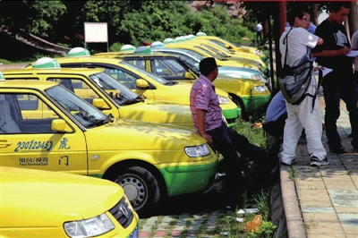 24日下午,東莞虎門威遠(yuǎn)炮臺附近的一處空曠停車場,數(shù)十輛“黃的”整齊地停放在一起。的哥老黃接受采訪時說,他們是東莞市公共的士有限公司的司機,全公司在虎門營運的車輛約有200輛,當(dāng)天全部閑放在虎門空曠地帶“趴窩”。原因是,從18日開始,虎門交通分局派出幾名社會人士充當(dāng)稽查人員,對出租車進行明察暗訪,幾天內(nèi),東莞公共的士有限公司因不打表被罰的車輛就達30多輛!昂芏喽际潜蝗苏T導(dǎo)才沒有打表的!彼緳C們認(rèn)為,交通部門此“暗訪”其實就是“釣魚”執(zhí)法。24日下午,東莞市交通局虎門分局門口擠滿了前去辦理處罰手續(xù)的出租車司機。