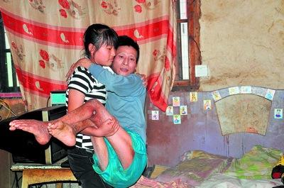 劉楨原本有個(gè)還算幸福的家庭,可在當(dāng)年的一場礦難中,作為礦工的劉中心被壓斷了脊椎,腰椎受損,神經(jīng)受到破壞,從此落下了半身不遂,大小便失禁,生活不能自理。一年之后,其妻子因不能忍受貧寒改嫁他鄉(xiāng)。那一年劉楨才5歲,家庭所有的生活重?fù)?dān)全部壓在了她稚嫩的肩上。