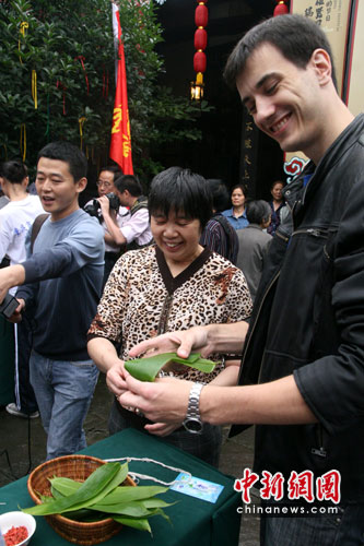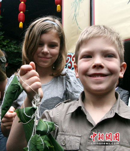 來(lái)自澳大利亞的尼克斯一家也成為現(xiàn)場(chǎng)的焦點(diǎn)。三個(gè)金發(fā)碧眼的小孩熟練地拿起粽葉包起了粽子。在不到半小時(shí)的時(shí)間內(nèi),僅有5歲的尼威廉就包了5個(gè)有模有樣的粽子出來(lái),引得現(xiàn)場(chǎng)觀眾連聲叫好。據(jù)尼克斯夫人介紹,他們家三個(gè)小孩平時(shí)對(duì)中國(guó)文化都很感興趣,以前就學(xué)過(guò)包粽子。(完)