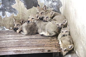11日上午,在工作人員的指引下,記者在狼館終于看到7只小狼崽害羞地走了出來(lái)。7只小狼崽都是全身黑灰色,身長(zhǎng)約30厘米,極像小狗,溫順乖巧的樣子一點(diǎn)也看不出狼的兇狠。常州淹城野生動(dòng)物世界副總經(jīng)理、動(dòng)物專家李代兵分析說(shuō),它們先前一直跟山羊媽媽一起生活,這個(gè)“羊奶媽”對(duì)它們的影響很大。