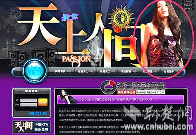 上月,北京天上人間被查封后,網(wǎng)民紛紛上網(wǎng)了解天上人間更多信息。上月22日,有網(wǎng)友點開天上人間官網(wǎng),發(fā)現(xiàn)彤彤的照片竟被掛在首頁(如圖)。該網(wǎng)友當(dāng)即在貓撲網(wǎng)發(fā)帖爆料,并迅速引起網(wǎng)友廣泛關(guān)注。