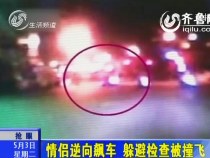 實拍:情侶逆向飆車 為躲避檢查被撞飛
