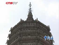 千年農(nóng)安遼塔避雷針地線被盜 疑為迷信所致