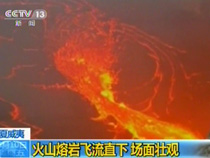 實(shí)拍:火山熔巖飛流直下 場面壯觀