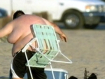 胖哥沙灘遇尷尬 沙灘椅如影隨形