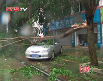 記者出鏡:記者剛剛從海南省氣象臺(tái)了解到最新消息 納沙現(xiàn)在距離海南110公里的海面上 從昨天開始 ?谑幸呀(jīng)出現(xiàn)這樣風(fēng)雨大作的天氣 大家可以看到我身后的這一棵樹已經(jīng)被大風(fēng)吹倒 記者一路走來 海口市區(qū)內(nèi)部分路段已經(jīng)出現(xiàn)內(nèi)澇擁堵現(xiàn)象