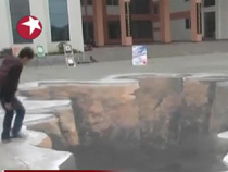 學(xué)校操場現(xiàn)“大坑” 原是3D地畫“創(chuàng)作”