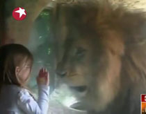 實拍:三歲女童面對雄獅不畏懼