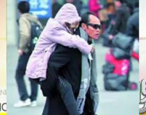 穿黑風(fēng)衣戴黑墨鏡男子背八旬老母跨省探親