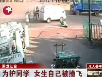 女生舍己救人 推開同學(xué) 自己被汽車撞飛