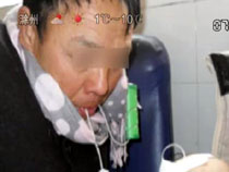 擔(dān)心孫子吊水冷 爺爺口含輸液管