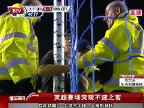 英超球迷沖進場內(nèi)用手銬把自己鎖在球門上