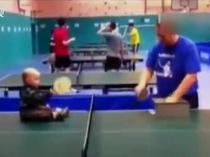 英國(guó)年僅1歲半寶寶坐球臺(tái)上練乒乓走紅