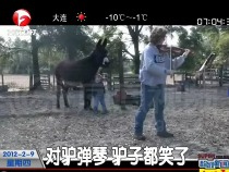 樂手對(duì)驢拉小提琴 結(jié)果驢“笑”了