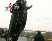 一時(shí)心急:油門當(dāng)剎車 轎車沖進(jìn)河