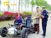 交警曝“裸奔跑車”上路照 無引擎蓋車門車頂