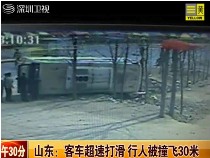 實(shí)拍:客車超速打滑 行人被撞飛30米
