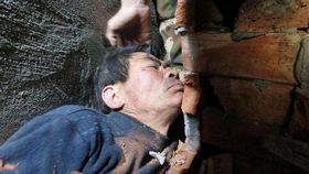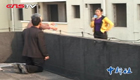 實拍:男子抄近路被卡墻縫