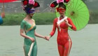 實拍車展車模現(xiàn)場上演人體彩繪