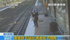 澳大利亞一乘客跌下站臺 勇敢女子相救