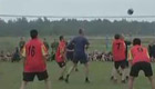美女主持人直播球賽 被足球砸中腦袋
