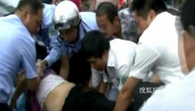 監(jiān)拍:3劫匪當街追砍警察 高喊"砍死他們"
