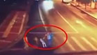 實(shí)拍驚險(xiǎn)車禍 幸運(yùn)男子飛身躲過
