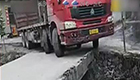 實拍大貨車轉彎過窄橋